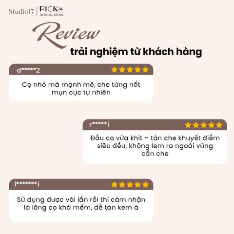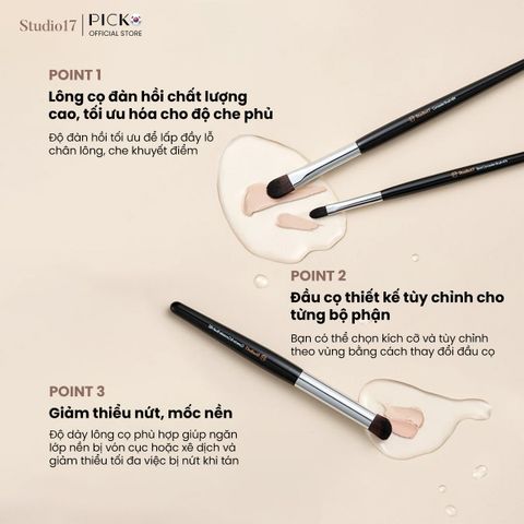 Studio17 mang đến ba thiết kế cọ che khuyết điểm chuyên biệt, phù hợp với từng nhu cầu và từng vùng da: