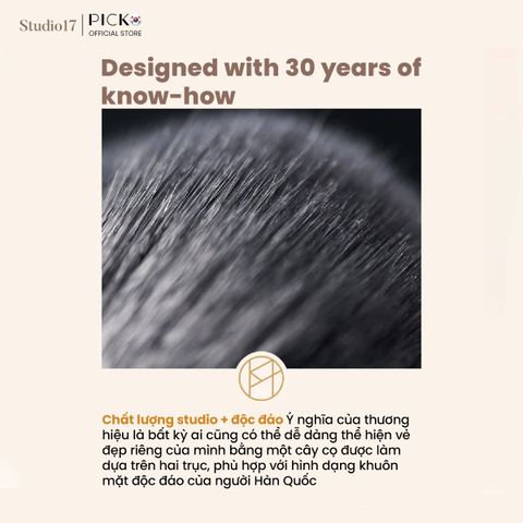 Mỗi cọ được chế tác với lông mềm mại, đàn hồi cao, ôm sát da và giữ lượng kem vừa đủ, giúp che phủ đồng đều mà không gây dày nặng. Kỹ thuật cắt tỉa chính xác từng sợi lông giảm ma sát, hạn chế kích ứng và nâng niu bề mặt da.