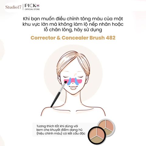 Cọ corrector & concealer 482: Dành riêng cho vùng da rộng hoặc vùng có lỗ chân lông lớn, mang đến khả năng chỉnh tone nhanh chóng và hiệu quả.
