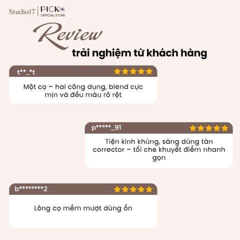 Studio17 mang đến ba thiết kế cọ che khuyết điểm chuyên biệt, phù hợp với từng nhu cầu và từng vùng da: