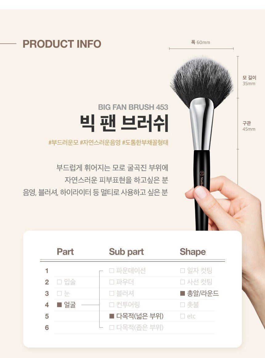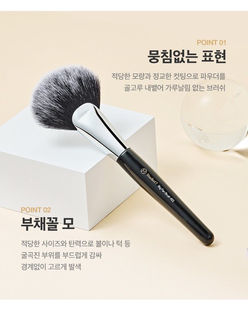 Nhờ kích thước và độ đàn hồi phù hợp, phần đầu cọ xòe giúp ôm sát những vùng cong của gương mặt, phủ phấn mịn màng, đều màu, tạo nên hiệu ứng tự nhiên và liền mạch.
