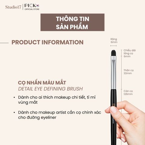 Studio17 Defining Brush 721 được chế tác dành riêng cho những ai mong muốn thể hiện nét trang điểm mắt tinh tế và chính xác, hoặc tạo điểm nhấn sắc sảo cho đôi mắt.