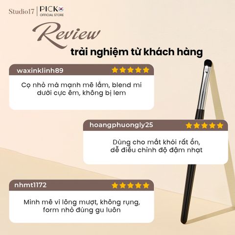 Studio17 tôn vinh tinh thần tự do sáng tạo, khơi dậy khát khao khẳng định dấu ấn cá nhân với thông điệp “Ai cũng có thể trở thành nghệ sĩ của chính mình”. Mỗi cây cọ được chế tác thủ công tinh xảo, trau chuốt từng chi tiết, kết hợp hoàn hảo giữa tính nghệ thuật và sự tiện dụng. Studio17 không chỉ mang đến những công cụ làm đẹp chuyên nghiệp mà còn là người bạn đồng hành, giúp bạn tự tin khám phá và tỏa sáng với vẻ đẹp độc bản, đậm chất riêng.