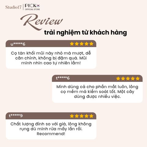 Phần đầu cọ thu gọn tinh tế, dễ dàng kiểm soát và nhấn khối ở những vùng nhỏ như sống mũi, cánh mũi và gò má, mang lại đường nét sắc sảo nhưng vẫn tự nhiên.