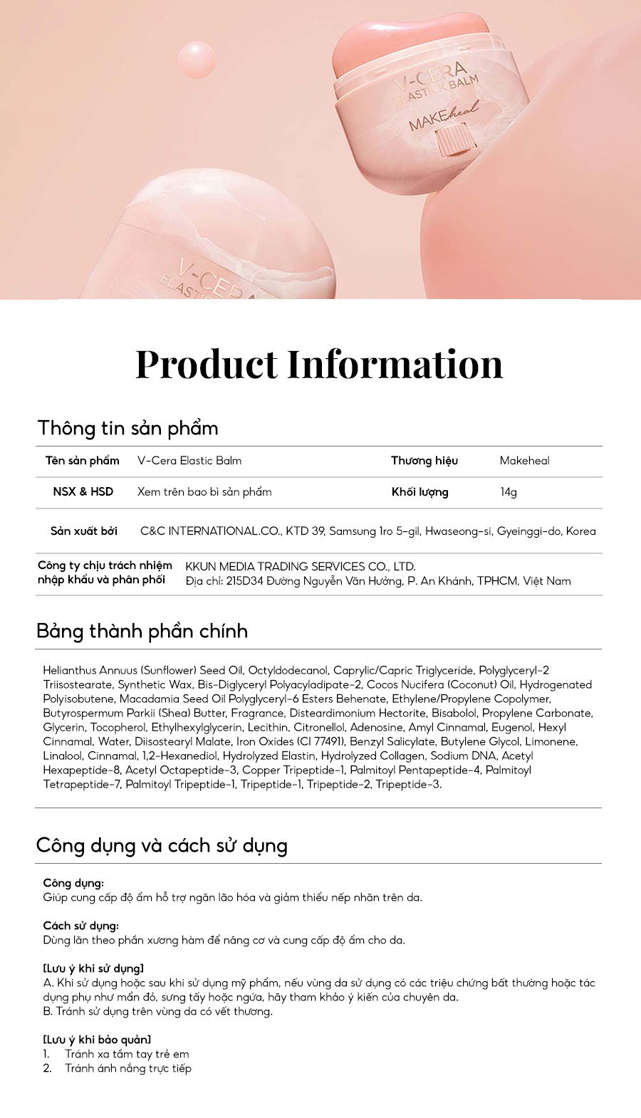 Hướng dẫn sử dụng MAKEHEAL V-Cera Elastic Balm