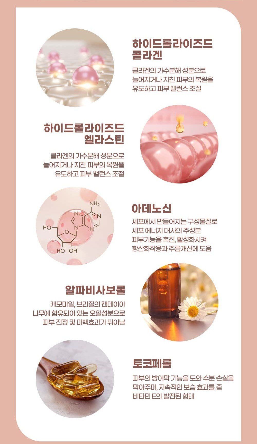 Hydrolyzed Collagen và Hydrolyzed Elastin giúp phục hồi độ đàn hồi, hỗ trợ tái cấu trúc và tăng cường sự săn chắc cho da.