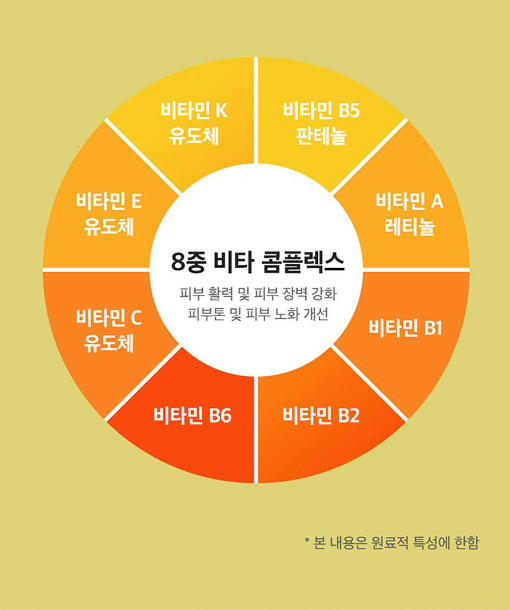 Phức hợp 8 Vitamin (C, B1, B2, B5, B6, A, E, K): Cung cấp dưỡng chất, thúc đẩy tái tạo tế bào da.